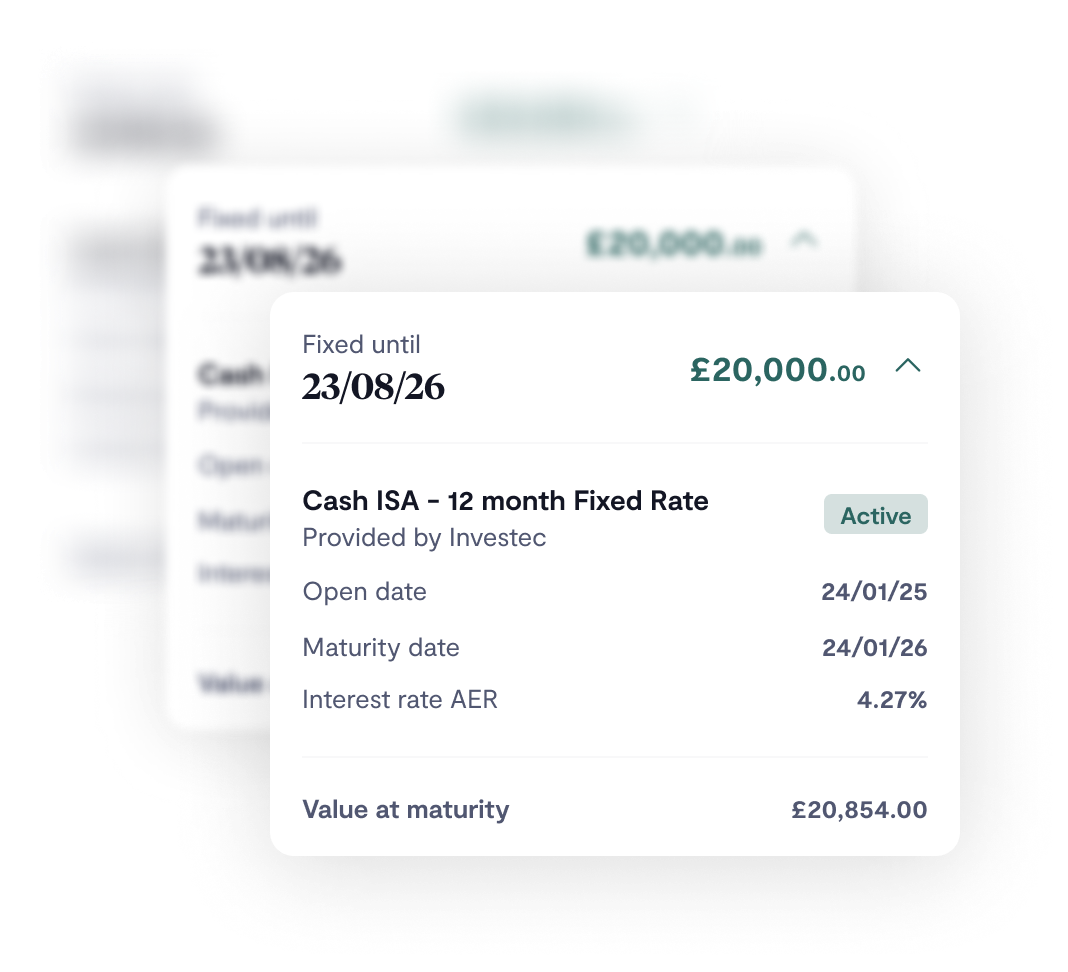 Lock your savings away for 12-months with our Fixed Rate Cash ISA and earn 4.27% AER (fixed). Plus add more funds later on to lock-in for 12-months from the date they are added, at the rate available at the time.