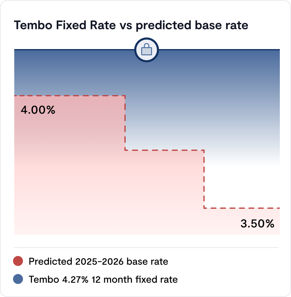 The base rate could be at 3.75% by the end of 2025, with further cuts predicted. Protect against the unknown with a fixed rate for 12-months.