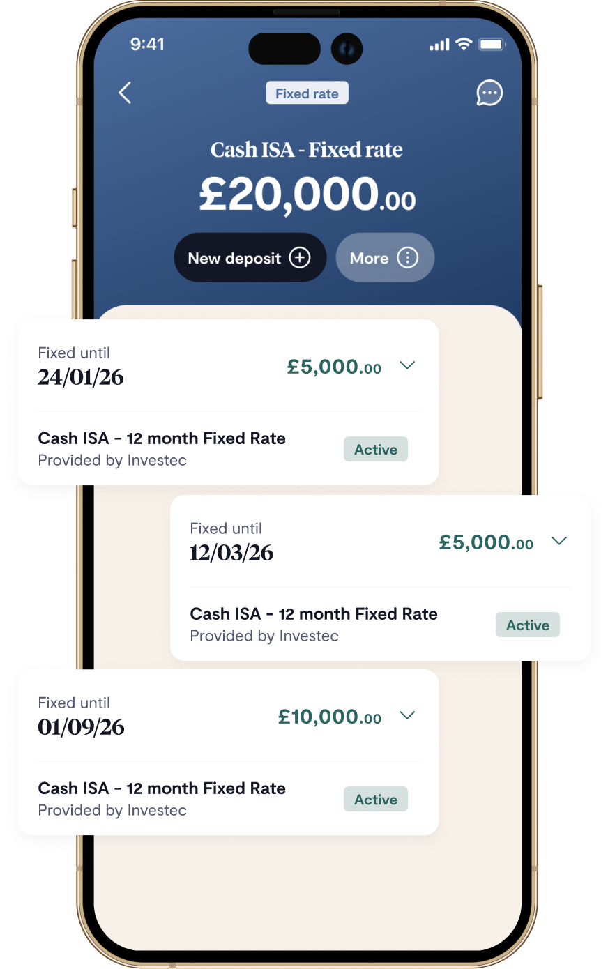 All money in your Fixed Rate Cash ISA is held securely with our partner and the deposit taker Investec Bank plc.